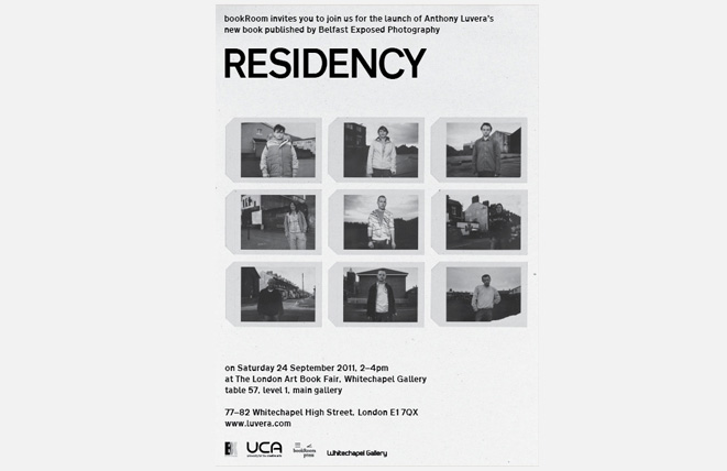 -The bookRoom hosts the launch of the publication Residency by Anthony Luvera. This book encompasses photographs made over a 16 month period by the artist and people who have experienced homelessness living in Belfast. Residency consists of a series of large-format Assisted Self-Portraits, landscape images of Belfast and documentation of Luvera’s working practice through photographs and production polaroids, and features [read more]